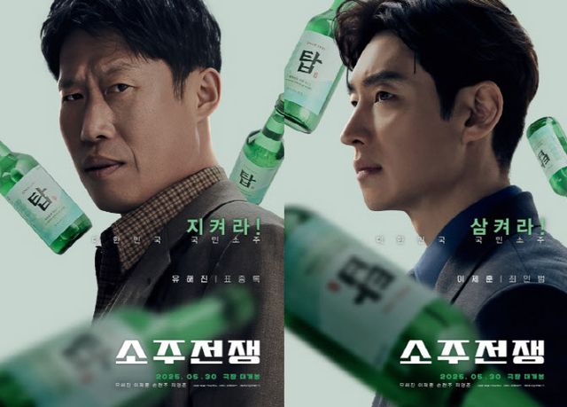신선한 소재에 대한 기대감과 베테랑 배우들의 연기 전쟁을 예고하며 올여름 뒤끝 없는 신선한 즐거움을 선사할 영화 ‘소주전쟁’이 압도적인 비주얼을 자랑하는 2차 캐릭터 포스터를 공개했다. 이번에 공개된 포스터는 ‘소주전쟁’의 또 다른 주역이라 할 수 있는 ‘탑소주’가 각 캐릭터의 주위를 날아다니는 형상을 보이고 있어 시선을 사로잡는다.