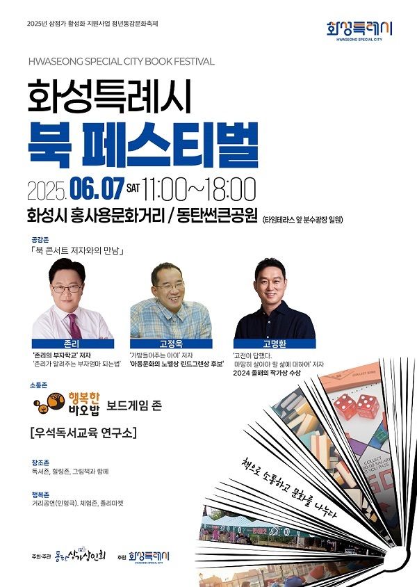 동탄상가상인회 윤석복 회장은 “책을 통해 세대와 세대, 이웃과 이웃이 연결되는 계기가 되기를 기대한다.”며 “이번 북 페스티벌이 지역 상권에 새로운 활기를 불어넣고 시민들에게는 문화와 예술을 함께 누릴 수 있는 시간이 되길 바란다”고 전했다.