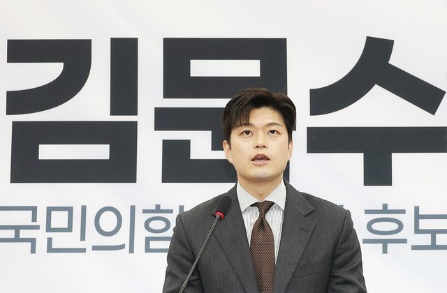 김용태 국민의힘 비상대책위원장이 20일 오전 서울 여의도 국회에서 기자회견을 열고 대통령 후보 배우자 TV토론을 제안하고 있다. / 뉴스1