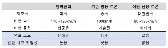 어탐 드론의 최대 장점은 친환경적이라는 점이다. 헬리콥터와 기존의 범용 드론은 화석연료로 구동돼 탄소 배출량이 높지만, 어탐 드론은 배터리로 작동돼 연료 소모가 없다.