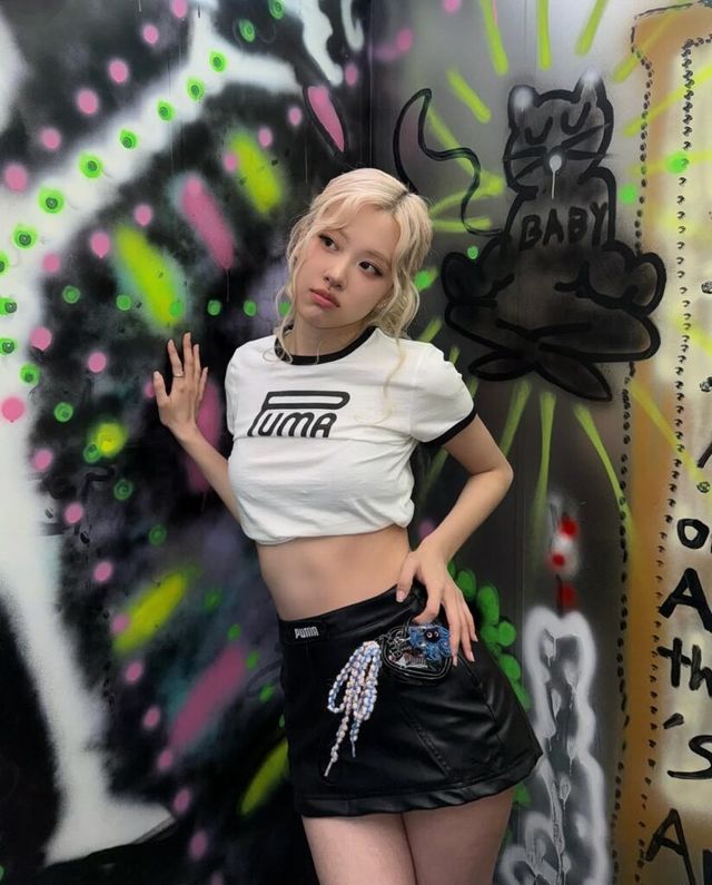 로제는 크롭트 스타일링을 즐겨 입는 대표적인 셀럽이죠. 이번엔 푸마의 로고가 돋보이는 기본 기장의 티셔츠를 돌돌 말아 크롭트처럼 연출했습니다. 작년 여름에 입던 티셔츠도 이렇게 연출하면 전혀 다른 무드로 스타일링 할 수 있죠. 지루한 티셔츠에 ‘손맛’ 좀 더해볼까요?