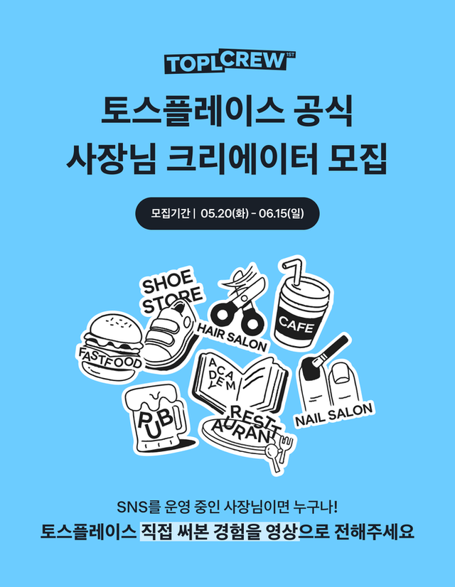 토스플레이스는 가맹점주와 함께 하는 '토플크루' 크리에이터 1기를 모집한다고 20일 밝혔다. ⓒ 토스플레이스