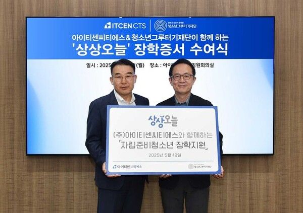 아이티센씨티에스는 청소년그루터기재단과 '상상오늘' 2기생들을 선발해 장학증서를 수여했다고 20일 밝혔다.
