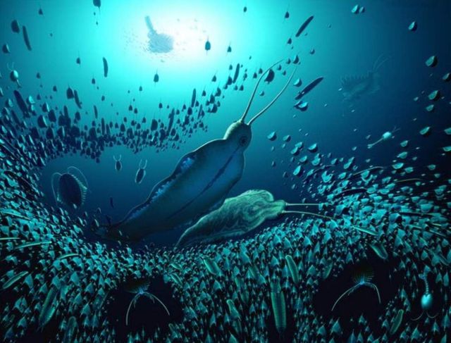 거대한 원시 화살벌레가 다른 해양동물을 사냥하는 재구성도. / 극지연구소 제공