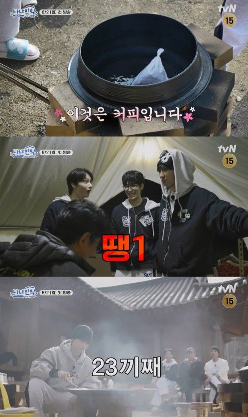 특히 다인원 그룹답게 대용량 요리를 준비하고, 뚝딱뚝딱 해내는 모습이 재미를 선사할 것으로 보인다. 한 끼에 고기 40인분을 굽고, 커피를 마시기 위해서는 가마솥에 물을 한가득 받아서 끓여야 하는 것. "'나나민박'이 아니라 '올드보이' 같다"는 호시의 소감은 세븐틴표 미식회에 기대감을 더한다.