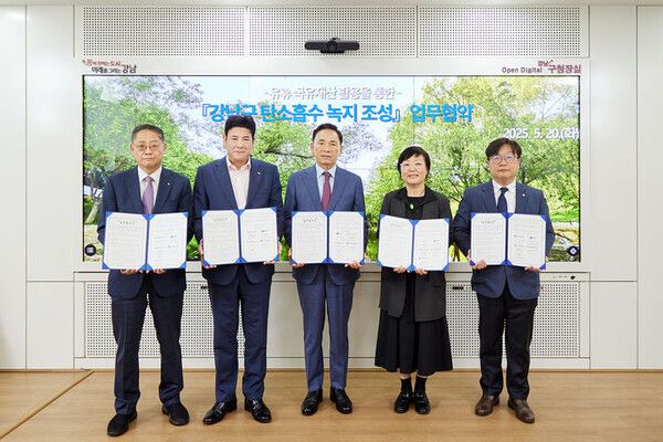 뉴시스 보도에 따르면, 캠코는 20일 서울 삼성동 강남구청에서 강남구청, 서울주택도시공사, 한국환경공단, 환경재단과 '탄소흡수녹지 조성 업무협약'을 체결했다.