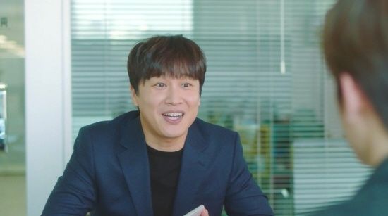 공개된 사진에는 단정하고 깔끔한 슈트 차림으로 회의실에 앉아 있는 정재현(차민호 역)과 환한 미소로 그를 반기는 차태현의 모습이 담겼다.