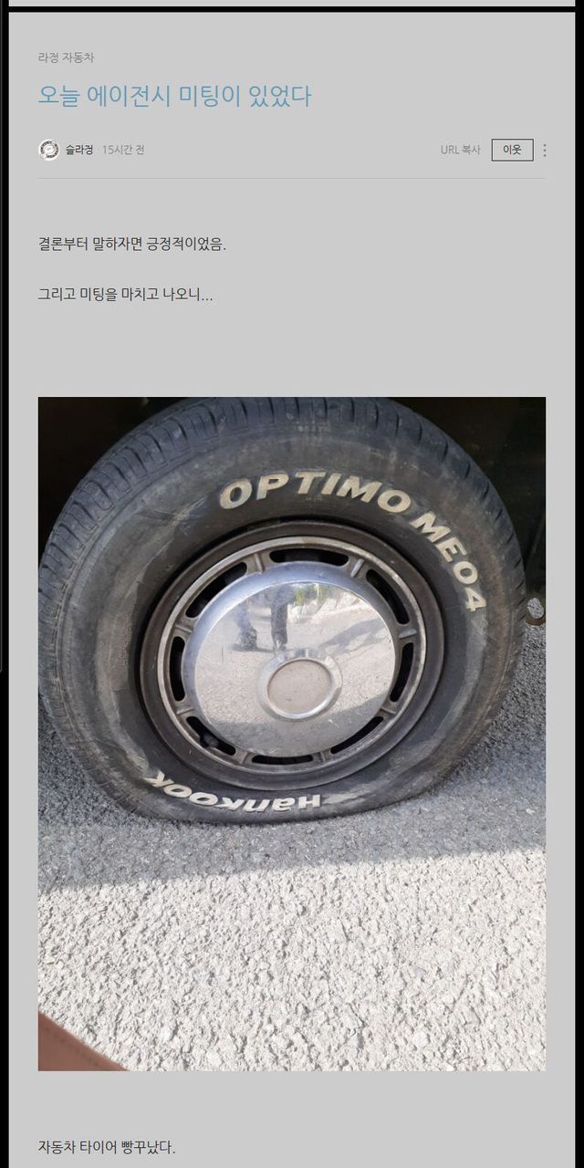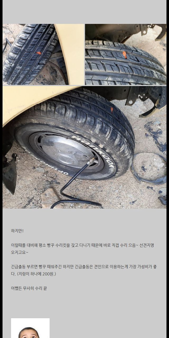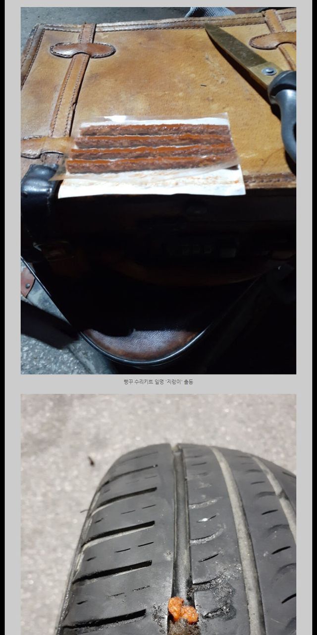 타이어 펑크를 예상해서 컴프에 지렁이 까지 준비하고