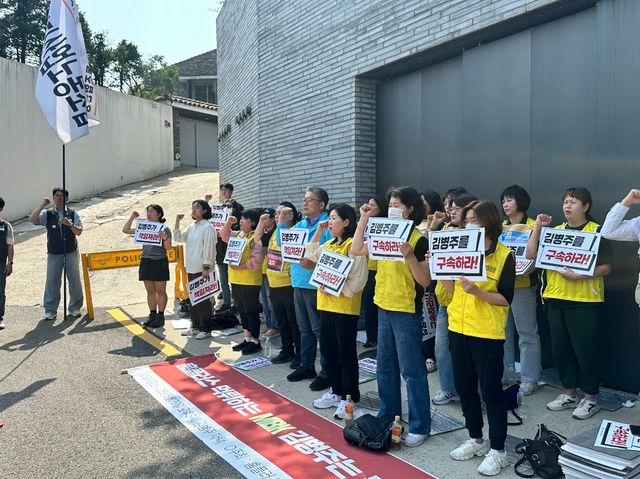 전국민주노동조합연맹(이하 민주노총) 서비스연맹 마트산업노동조합(이하 마트노조) 홈플러스지부와 홈플러스 사태 해결을 위한 공동대책위원회(이하 공대위)는 20일 오후 3시 김병주 MBK 회장 자택 앞에서 '홈플러스 문제 해결촉구' 집회를 가졌다. 집회에 참여한 이들은 홈플러스 근로자와 입점업체들의 생존권 보장을 위한 MBK의 경영 정상화 노력과 금융당국의 적극적인 개입을 촉구하고 나섰다.