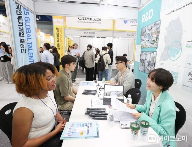 해외취업관은 현장 참가가 어려운 해외기업과 구직자를 위해 오는 30일까지 온라인 채용 상담을 병행 운영한다. 올해는 외국인투자기업 147개사, 해외기업 124개사, 외국인유학생 채용기업 102개사 등 총 370여 개사가 참가했다.