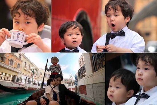 은우는 디저트를 조심스럽게 음미하고 엣지 있게 오렌지 주스를 즐기는 우아한 꼬마 신사의 모습으로 아빠 김준호를 미소 짓게 만든다.
