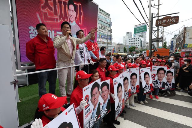 김 후보는 이어 서울 서초구 집중유세에서도 "저는 방탄조끼 안 입었다. 방탄유리도 필요 없다"며 "방탄 입법도 필요 없다. 자기가 지은 죄가 얼마나 많으면 방탄조끼 입고도 모자라 방탄유리도 앞에 두고 '방탄법'을 만들어서 선거법 위반한 거, 허위사실 유포죄가 겁나서 조희대 대법원장 청문회 한다고 한다"고 했다.
