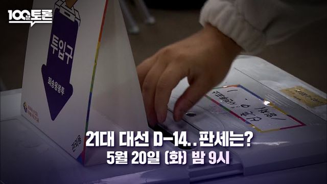 20일 방송될 MBC ‘100분 토론’은 ‘21대 대선 D-14‥판세는?’이라는 주제로 진행된다. 진보진영 대표 논객 유시민 작가와 보수 정치인 정옥임 전 새누리당 의원이 출연한다. 유시민 작가와 정옥임 전 의원은 현재 대선 판도를 분석하고 남은 변수를 전망해 본다.
