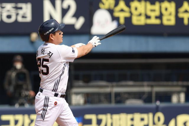 양의지는 20일 서울 잠실야구장에서 열린 2025 KBO리그 정규시즌 SSG 랜더스와 홈경기에 3번 타자·포수로 선발 출전해 1-4로 끌려가던 5회 말 추격하는 투런 홈런을 터뜨렸다.