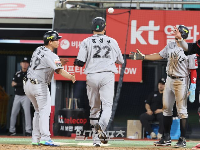 위기를 넘긴 KT가 5회 3득점 빅이닝을 만들며 달아났다. 선두타자 황재균의 안타 이후 장성우가 바뀐 투수 윤중현을 상대로 홈런포를 쏘아 올리면서 4-0을 만들었다. 이후 로하스의 안타와 강백호의 적시 2루타를 묶어 KT가 5점 차까지 달아났다.