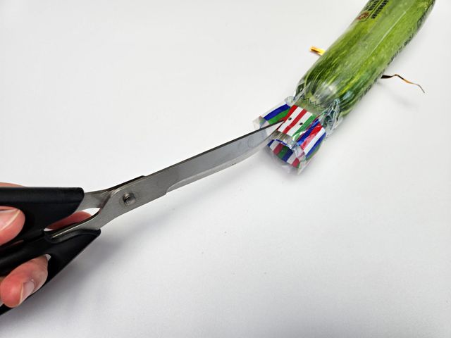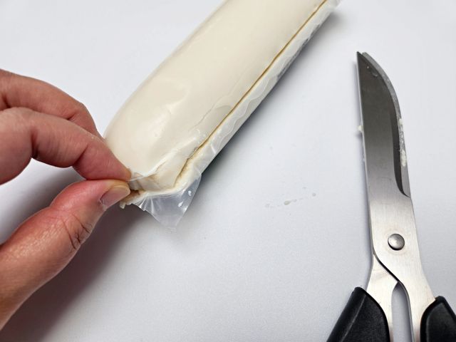 길쭉하게 튀어나온 부분을 가위로 잘라주세요.