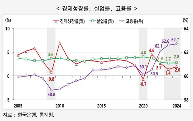 최근 수년간 국내 고용 시장은 경제성장률 둔화에도 불구하고 지표상으로는 양호한 수준을 유지하고 있으나, 전문가들은 그 속내를 면밀히 살펴야 한다고 경고한다.