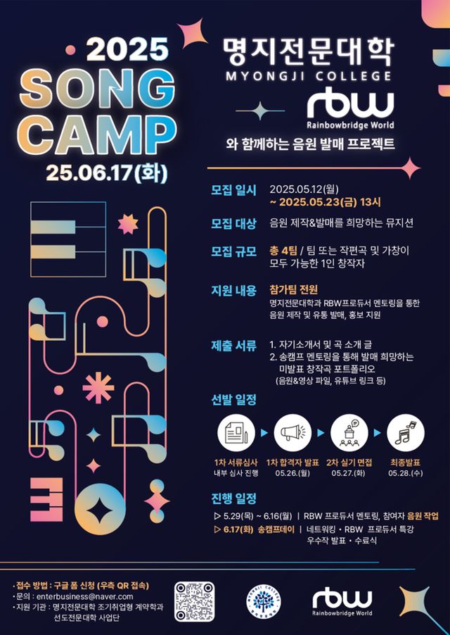 RBW는 작년에 이어 명지전문대학과 2년 연속 송캠프를 공동 주최하는 가운데, 단순한 교육 프로그램을 넘어 실제 음원 발매로 이어지는 실무형 프로젝트를 지향한다.