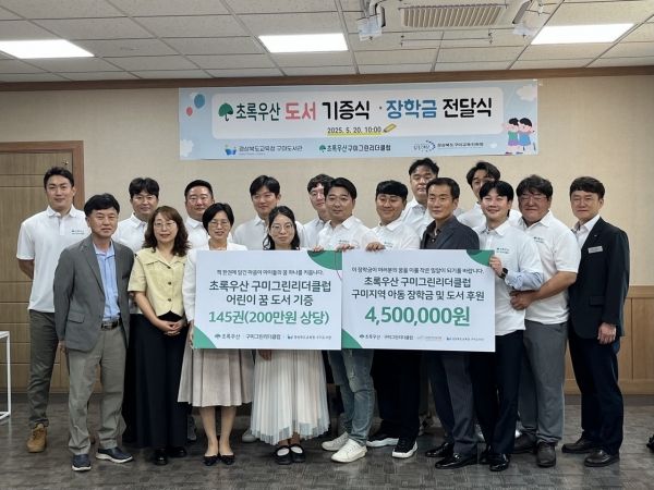 이번 행사는 5월 가정의 달을 맞아 지역 아동의 독서 기회 확대와 취약계층 아동의 건강한 성장을 지원하기 위해 마련됐으며, 구미그린리더클럽 회원들이 십시일반 마련한 기금으로 총 450만원 상당의 후원이 이뤄졌다.