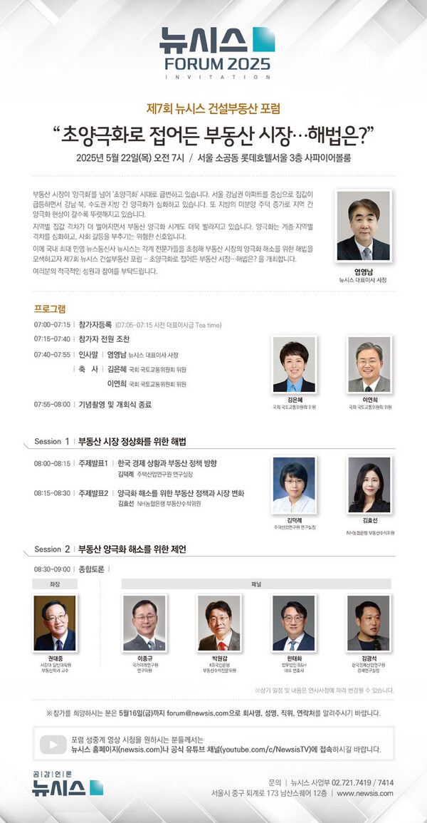 포럼 실황은 뉴시스 공식 유튜브 채널과 뉴시스 홈페이지를 통해 생중계될 예정이다.