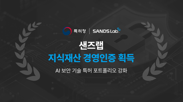 [프라임경제] 인공지능(AI) 보안 전문 기업 샌즈랩(411080)은 최근 특허청으로부터 '지식재산 경영인증'을 획득했다고 21일 밝혔다. 인증 유효기간은 2025년부터 2029년까지 4년간이다.