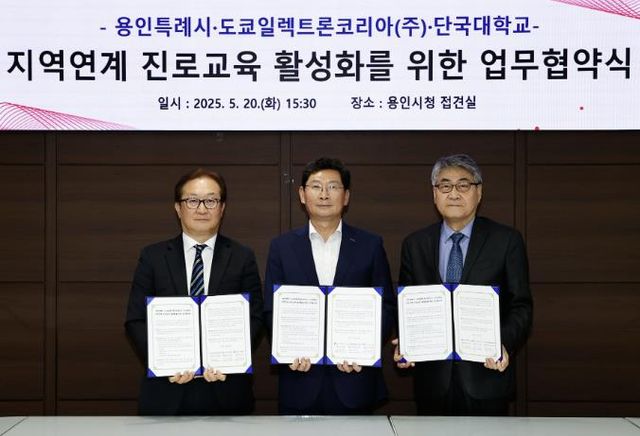 [파이낸셜경제=김영란 기자] 용인특례시는 20일 오후 도쿄일렉트론코리아(주), 단국대학교와 ‘지역연계 진로교육 활성화를 위한 업무협약’을 체결했다고 21일 밝혔다.