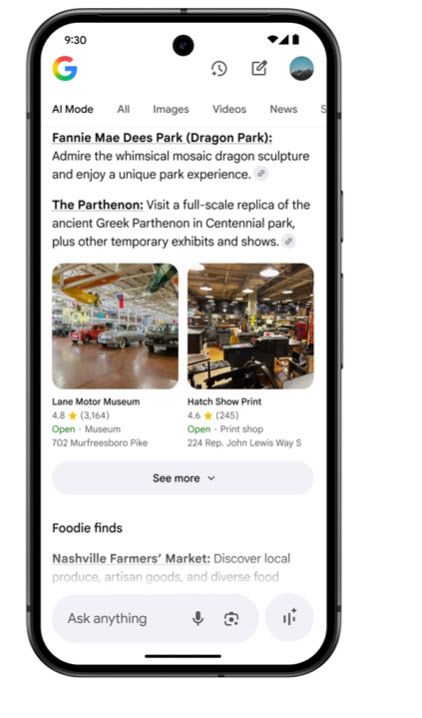 구글 앱 생태계 전반에 퍼지는 ‘개인 맞춤형 AI’도 구현됐다. 지메일, 캘린더, 구글 지도 등과 연동해, 사용자 상황에 최적화된 검색 결과도 제시된다. 예를 들어 여행 중 “내 주변에서 저녁 추천해줘”라고 하면, 항공편 정보·예약 기록·선호 맛집 스타일까지 종합해 제안한다.
