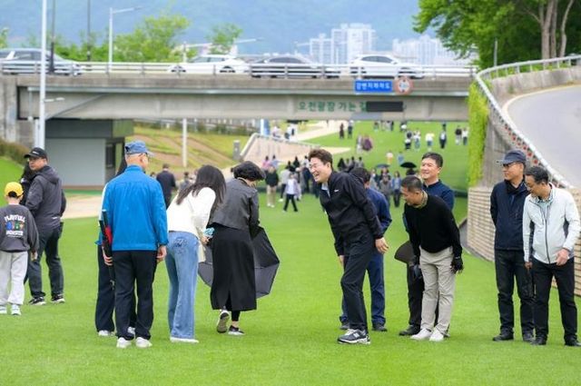 | ▲ 노관규 순천시장이 오천그린광장을 방문한 시민들과 인사를 나누고 있다 |