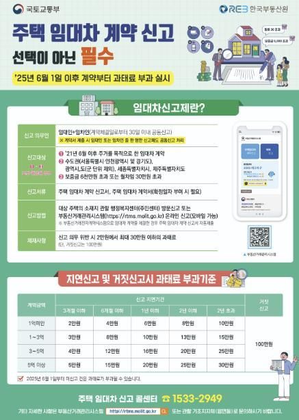 계도기간 종료로 2025년 6월 1일부터 보증금 6천만 원 또는 월차임 30만 원을 초과하는 임대차계약을 체결한 임대인·임차인은 계약일로부터 30일 이내에 임대차계약을 신고해야 한다.