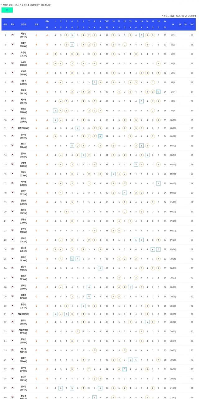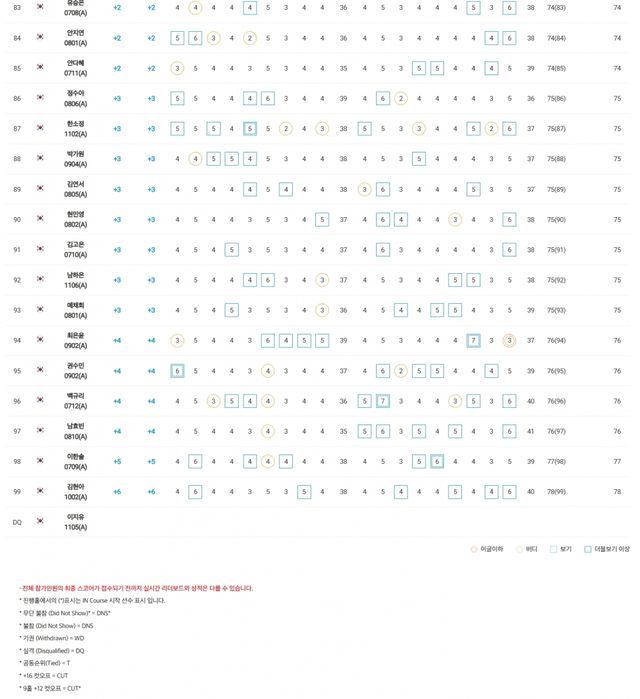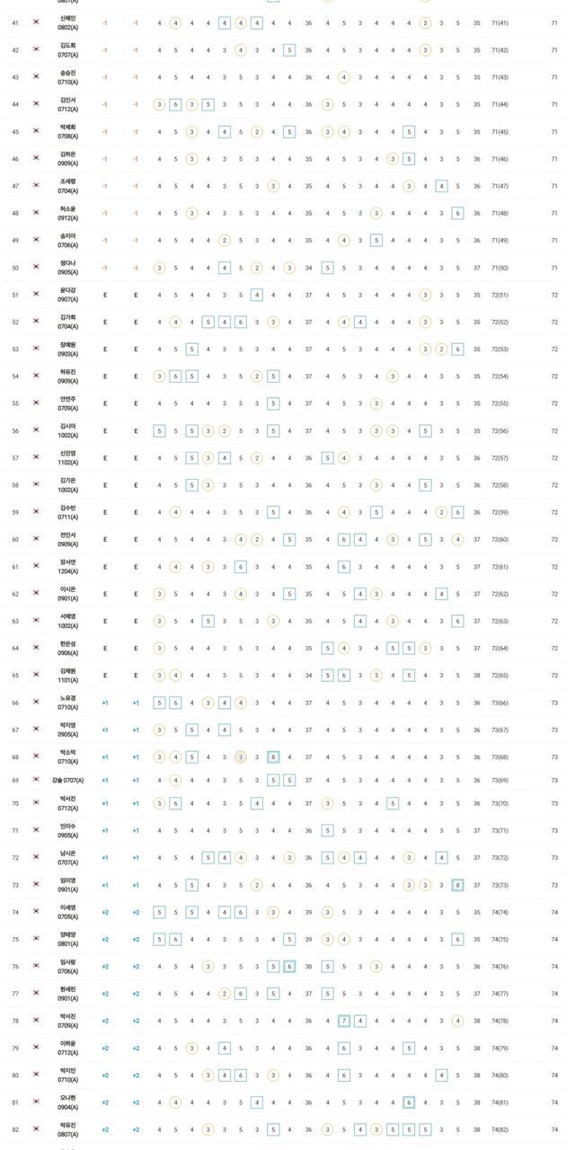 ▲메디힐 제15회 KLPGA회장배 여자아마추어선수권 1라운드 순위