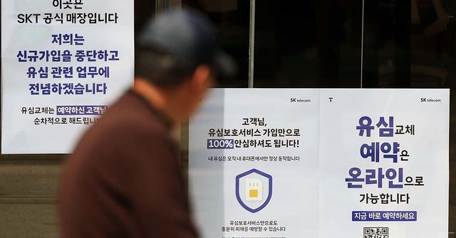 18일 서울시내의 한 SK텔레콤(SKT) 매장에 해킹 사태 관련 안내문이 게시돼 있다. SKT는 사이버 침해 사고 관련 고객 보호 조치의 하나로 디지털 취약계층을 위한 '찾아가는 서비스'를 19일부터 시행하고 있다. / 뉴스1