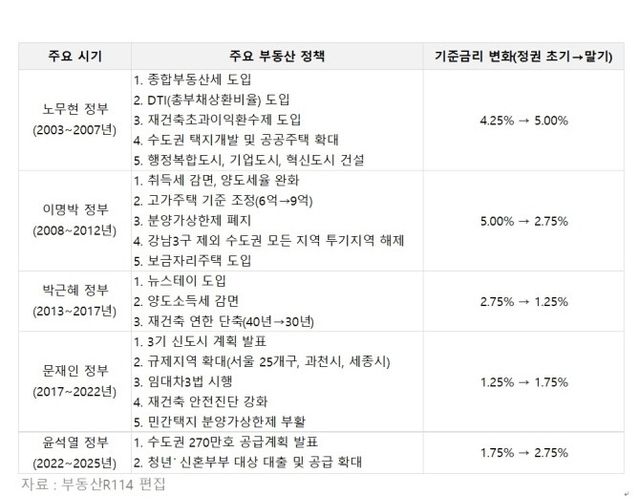 연도별 주요 부동산 정책 및 기준금리 변화. © 부동산R114
