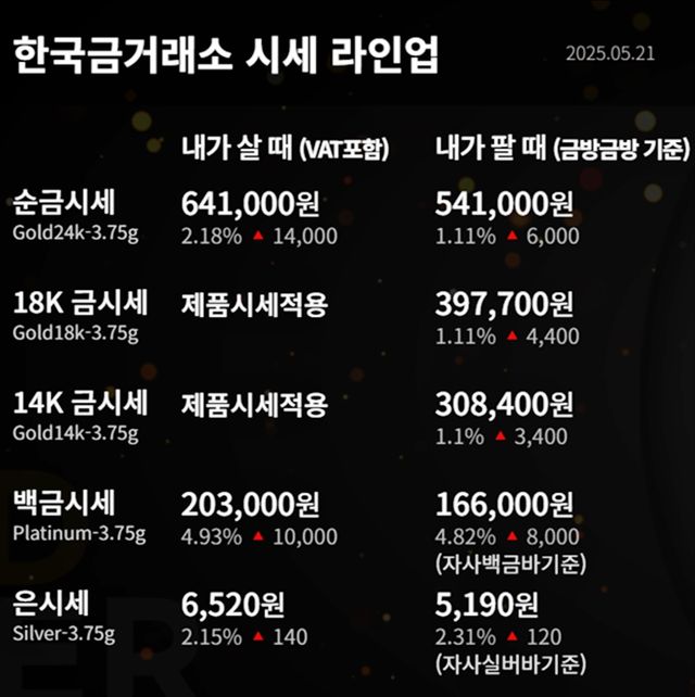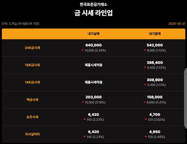 순금(24K) : 매입가 63만 5000원 / 매도가 54만 8000원