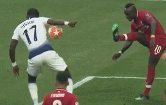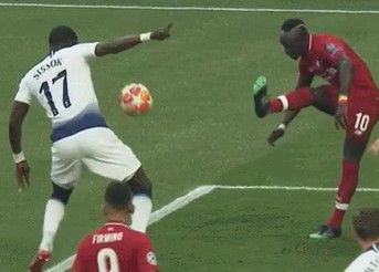 마네는 오른발로 크로스를 올렸다. 이게 시소코의 팔에 막혔다. 주심은 망설임 없이 페널티 킥(PK)을 선언했다. 이를 모하메드 살라가 대범하게 정중앙으로 처리해 골망을 흔들었다. 유럽 챔피언스리그 역대 결승전 중 두 번째로 빨리 터진 득점이 됐다. 토트넘은 경기 시작하자마자 리드를 허용했다. 결국 무득점으로 패배했다.