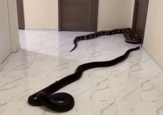 20일(현지시각) 태국 매체 방콕포스트에 따르면, 최근 현지 SNS에는 뱀 두 마리가 아파트 복도를 기어다니는 영상이 확산됐다.