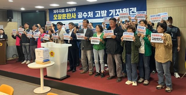 공안탄압저지 및 민주수호 제주대책위원회(이하 대책위)는 21일 제주도의회 도민카페에서 기자회견을 열고 "제주지법 제1형사부 주심 A부장판사를 직권남용과 법원조직법 위반 혐의로 공수처에 고발한다"고 밝혔다.