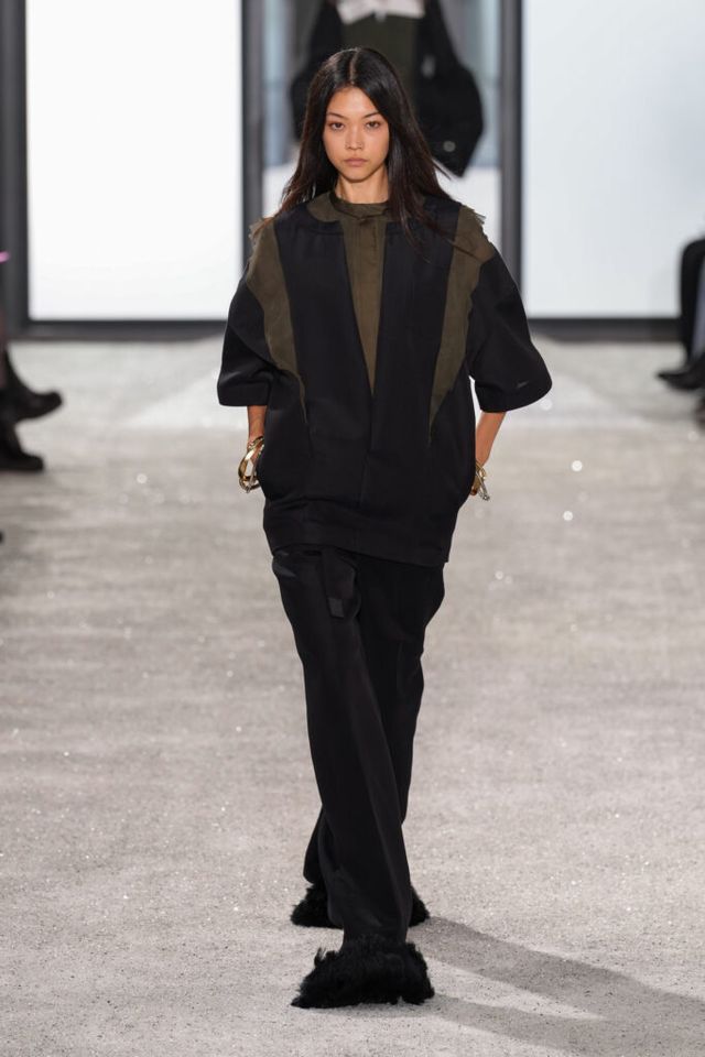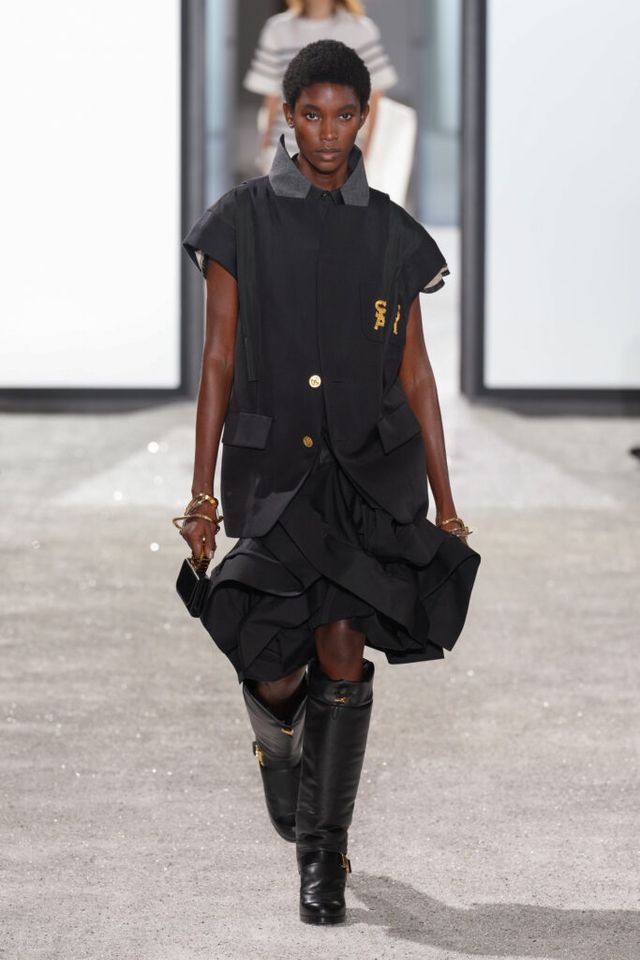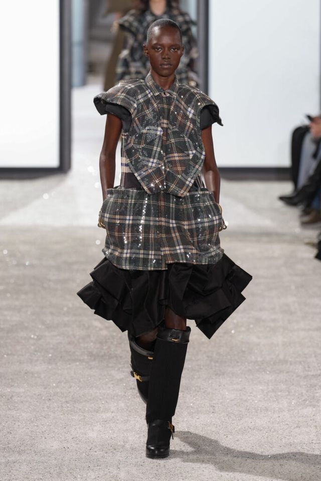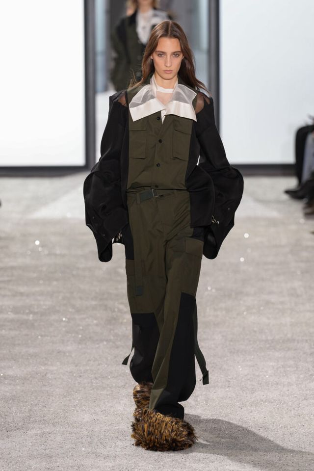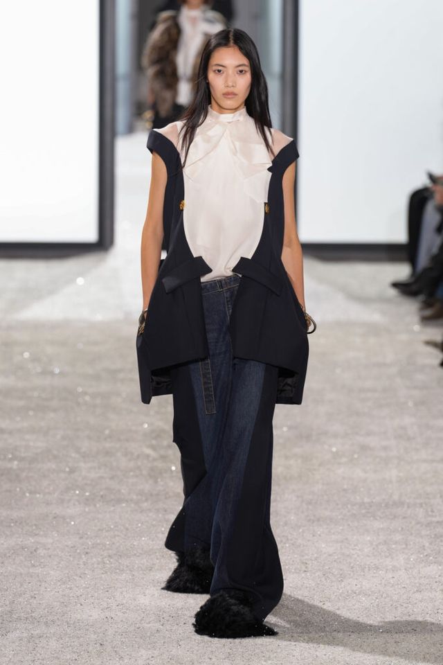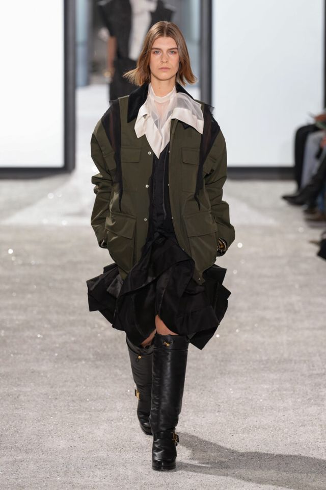 NOTE 디자이너 아베 치토세가 사카이의 초창기 컬렉션을 되돌아보며 ‘Something to Remember(기억할 만한 것)’를 주제로 컬렉션을 선보였다. 클래식한 블레이저에 프릴을 더하는가 하면, 항공 점퍼를 해체하고 절개해 새로운 실루엣으로 완성했다. 시폰 소재를 더한 헌팅 재킷과 클래식한 데님 재킷 등 상반된 소재를 조합한 하이브리드 룩도 여전했다. 언뜻 이질적으로 보이는 것들이 이루는 조화를 통해 사카이의 본질을 느낄 수 있었던 쇼.