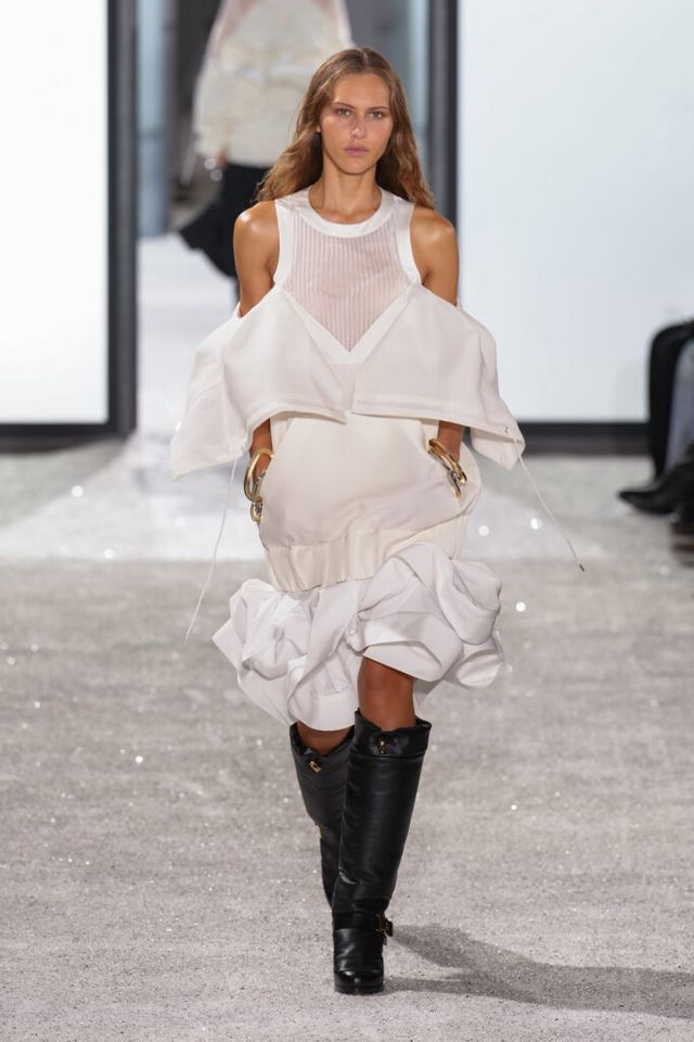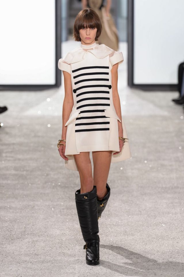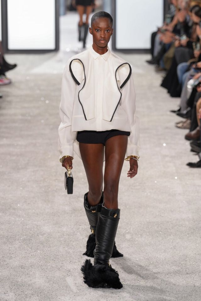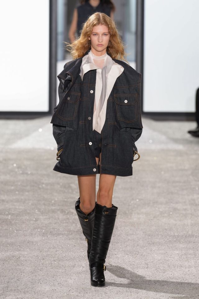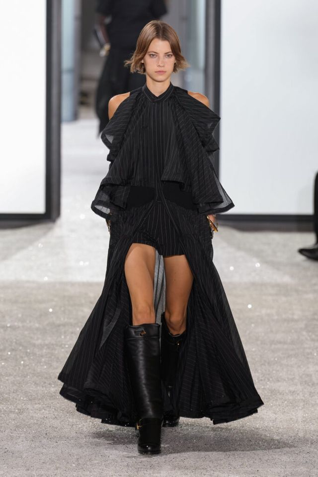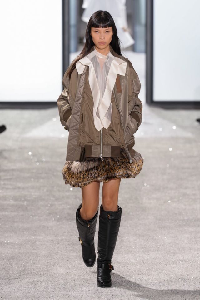 NOTE 디자이너 아베 치토세가 사카이의 초창기 컬렉션을 되돌아보며 ‘Something to Remember(기억할 만한 것)’를 주제로 컬렉션을 선보였다. 클래식한 블레이저에 프릴을 더하는가 하면, 항공 점퍼를 해체하고 절개해 새로운 실루엣으로 완성했다. 시폰 소재를 더한 헌팅 재킷과 클래식한 데님 재킷 등 상반된 소재를 조합한 하이브리드 룩도 여전했다. 언뜻 이질적으로 보이는 것들이 이루는 조화를 통해 사카이의 본질을 느낄 수 있었던 쇼.