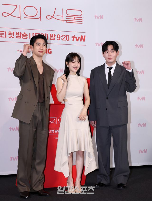 박보영은 21일 서울 용산구 CGV 영등포점에서 열린 ‘미지의 서울’ 제작발표회에서 “배우로서도 두 남성 배우들과 한번에 로맨스 호흡을 해보는 것도 다시 없을 기회라서 그 상황을 즐겼다”며 “저는 호흡이 잘 맞았다고 생각하는데 두 분은 어떻게 생각할지 모르겠다”고 웃었다.