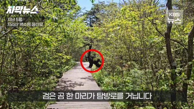 지난 2024년 5월 지리산 탐방로에서 발견된 반달가슴곰 / 'KBS News' 유튜브 캡처
