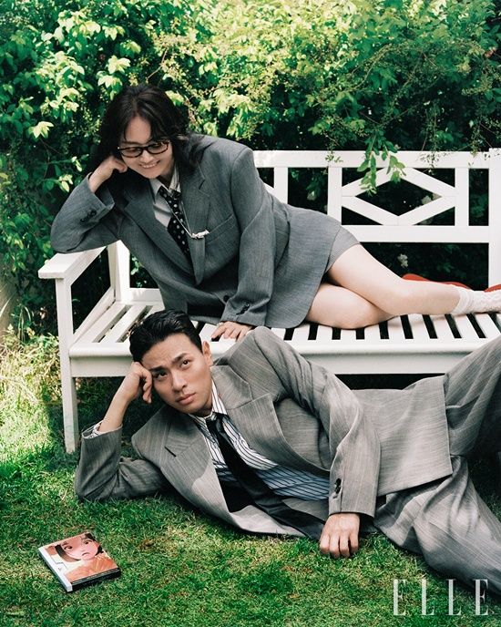 배우이자 출판사 대표인 박정민과 소설가 김금희가 패션 매거진 엘르와 함께한 화보가 21일 공개됐다.