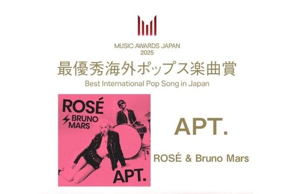 뉴시스 보도에 따르면, 21일 '뮤직 어워즈 재팬' 홈페이지에 따르면, 로제와 미국 팝스타 브루노 마스가 지은 '아파트'는 '베스트 인터내셔널 팝송 인 재팬'을 받았다.
