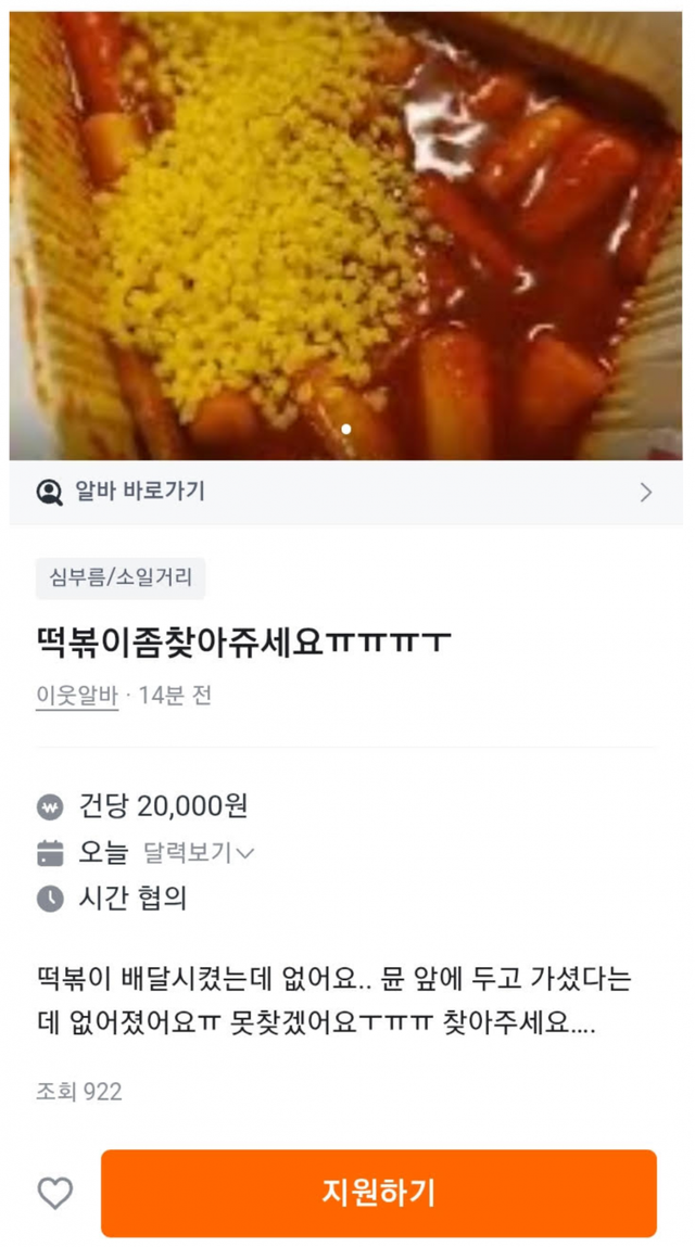 떡볶이를 얼마나 시켰기에 2만원이나 주고 찾아달라 할까?