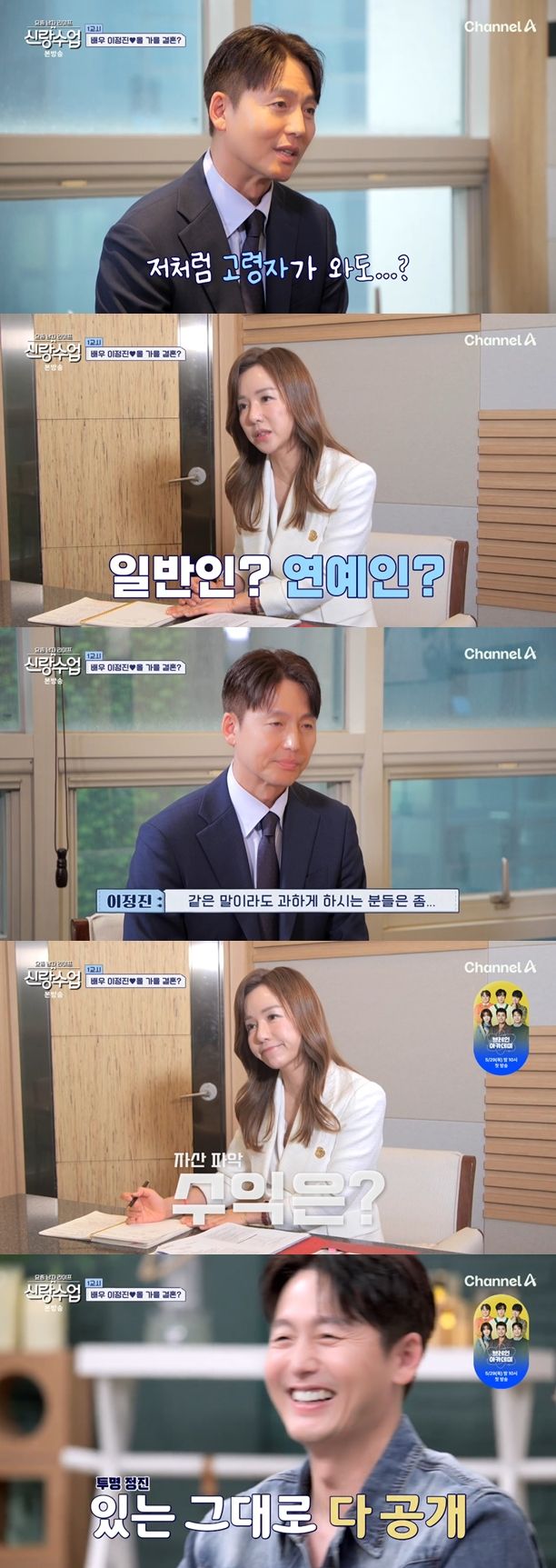 이정진은 결혼정보회사(결정사)를 방문했다. 그는 "제가 연애할 목적이었으면 안 왔을 것 같다. 배우자와 아이의 엄마가 될 사람을 찾는 게 맞는 것 같다. 그럼 완전히 결이 달라지는 것 같다. 그래서 더 신중하다"라고 결정사를 찾은 이유를 밝혔다.