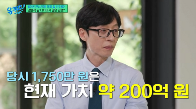 선우용여는 “어떤 분이 와서 도장을 찍으라고 했다. 도장을 찍으면 신랑도 나오고 그 분도 나올 수 있다고 해서 도장을 찍었다. 그래서 제가 빚쟁이가 됐다”고 말했다. 유재석은 “당시 1750만 원은 현재 가치로 약 200억 원”이라고 설명해 놀라움을 자아냈다.
