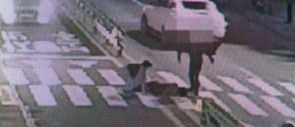 영상에는 40대 남성 A씨가 횡단보도를 건너는 일행을 뒤따르다 갑자기 한 남성을 발로 차 쓰러뜨리는 모습이 담겼다.