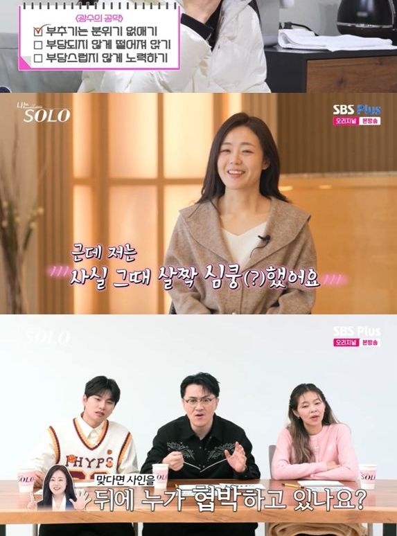 이날 단체로 술자리는 가지는 시간에 반복해서 플러팅을 날리는 광수에게 현숙은 "부담스럽게 생각하지 말라고 오늘 한 40번 정도 말씀하셨는데 지금 상당히 부담스럽군요"라며 속마음을 내비쳤다.