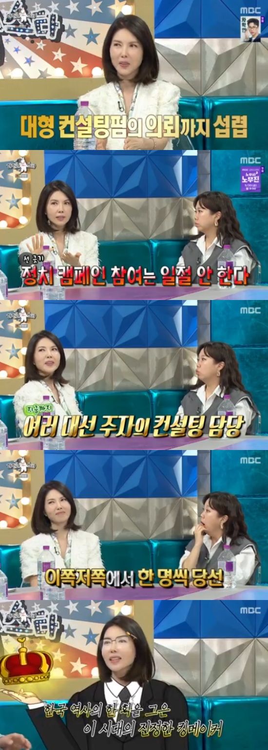 (엑스포츠뉴스 오수정 기자) '라디오스타'에서 백지연이 컨설팅 회사를 차린 후 대선주자들 컨설팅까지 했었다고 말했다.