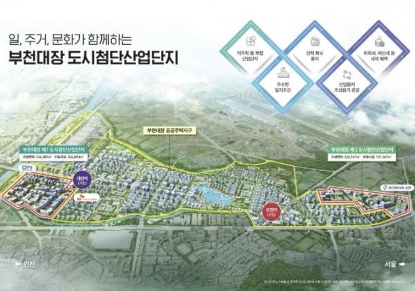 부천시는 올해 두 번에 걸쳐 대규모 투자유치 소식을 전했다. 먼저 지난달 대한항공과 오는 2030년까지 부천대장 제2도시첨단산업단지 내 65,845m2(약 2만 평) 부지에 무인기연구소, 무인기조립장, 운항훈련센터 등을 조성한다는 내용의 투자협약을 체결했다.