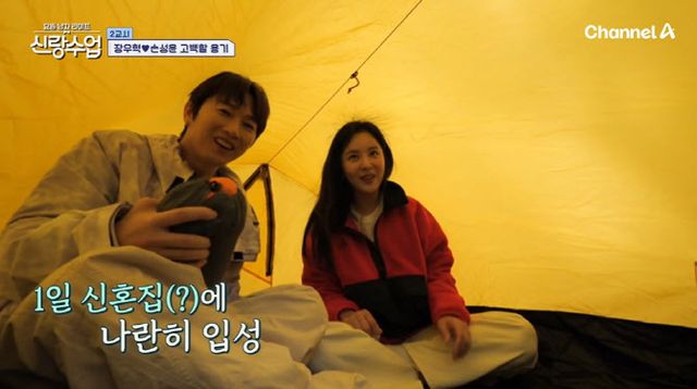 캠핑장에 도착한 장우혁과 손성윤은 텐트를 함께 설치했다. 텐트에 함께 들어간 두 사람을 보며 이정진은 “빨리 해가 져야 할 것 같다”며 웃었다. 장우혁은 “여자 분이 제 집인 텐트로 이사 오신 건 처음이다”라며 “같이 한번 누우실래요?”라고 말해 MC들을 놀라게 했다.